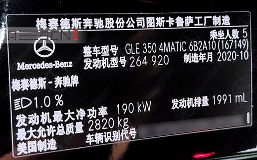 本辆奔驰GLE350搭载着型号为M264 920的2.0T的涡轮增压发动机,其最大功率为190kW(258PS)/6100rpm,最大扭矩为370NM/1800-4000rpm,与之匹配的是9挡手自一体变速箱。