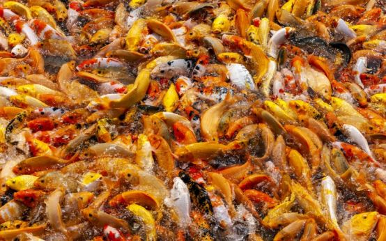 湖里锦鲤很多,非常活跃,不是代表今年好事将来?