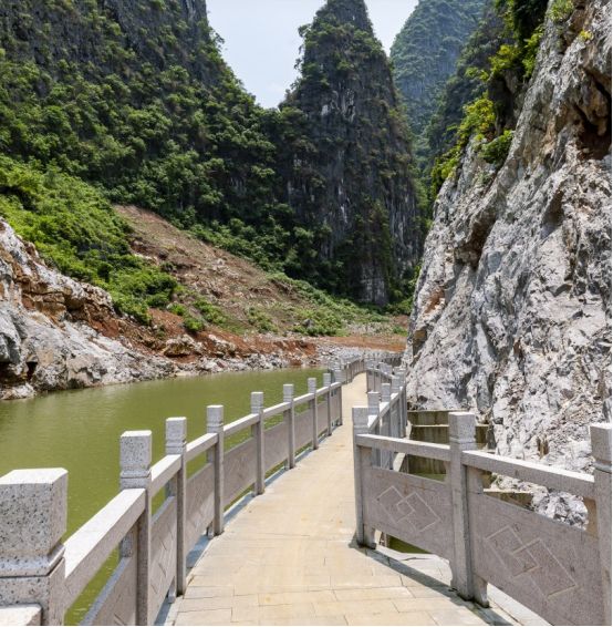 十里画廊面积约36平方公里。喀斯特地貌的峰、奇石、峰、丛,大多连根拔起在平地上,如千折剑戟直指天空,如千行竹笋,与周围村庄、民居、田园风光形成鲜明对比,形成了绚丽的自然景观。画卷。