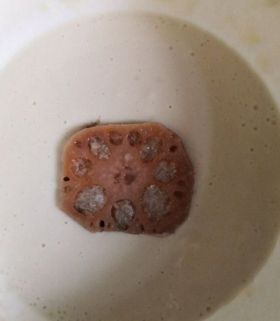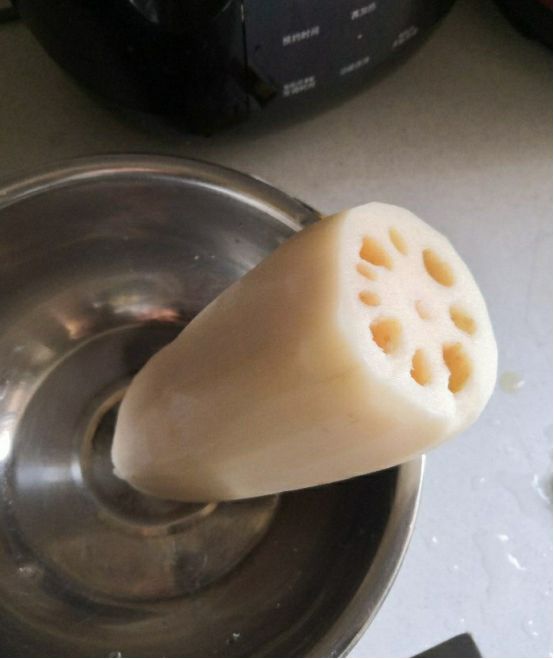 年前买的莲菜,正好用上,削皮。