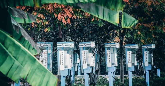 停车场上一排排的新能源车位,可见新能源的发展确实如火如荼。