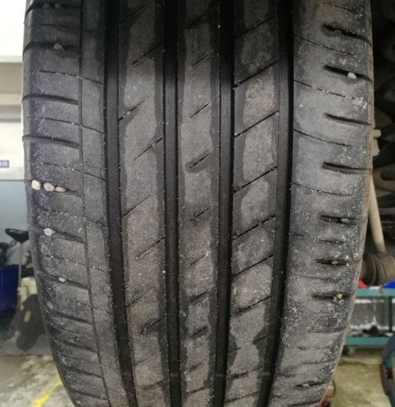 装上去后,只进行过一次轮胎前后对换,因为这不是对称轮胎,又有正反面,所以只能是前后对调
