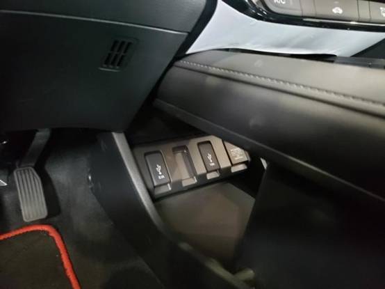 扶手箱那日常放点小东西没啥大问题。档把质感看着很好,造型也挺好看的。内饰整体是有质感的,用材用料还是比较良心的,不会显得廉价。前排的充电口位置比较隐蔽,把节省空间发挥到了极致。