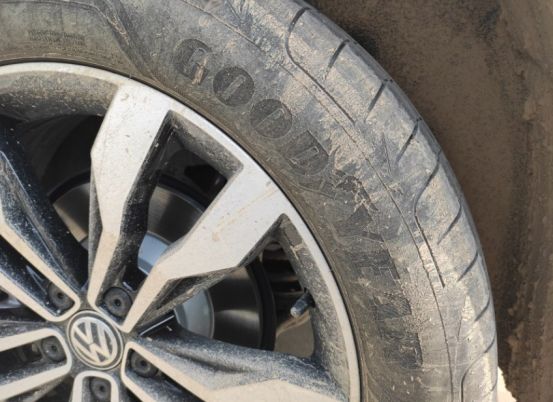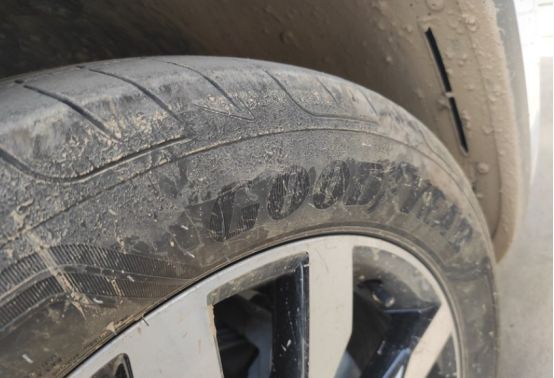刚回的老家跑的泥地,还没有去清洗,固特异的标识依然可见,这套轮胎,公路舒适性没得说,跑纯田间道路也是一把好手,脱困性能优越。