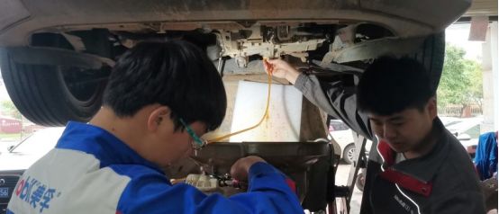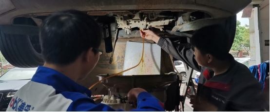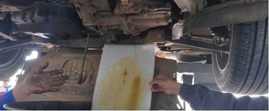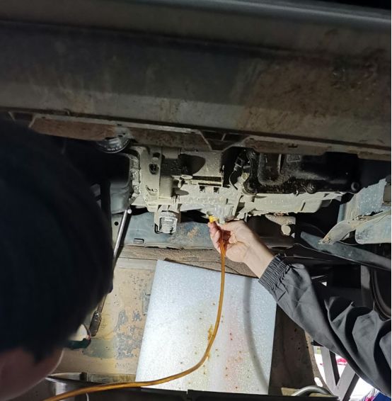 师傅先放掉原来的变速箱油有点淡黄色还好不算脏
