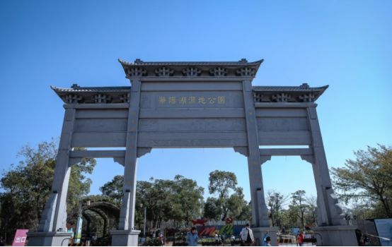 经过一个多小时的车程,终于抵达目的地,公园正门前的大牌坊,很是显眼。