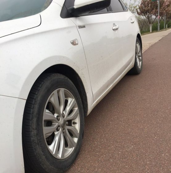 我的小白狼配的是205/55R16的轮胎,因为是轿车,尺寸不是很大,总体感觉舒适度还是很不错的,因为出去玩路上全是大车,很多拉沙的车路上撒的水,有一个路口的时候突然窜出来-辆摩托车,吓了我一跳立马来了个急刹,索性固特异的轮胎抓地力还是很强的,没有发生打滑等现象,质量还是比较不错的。