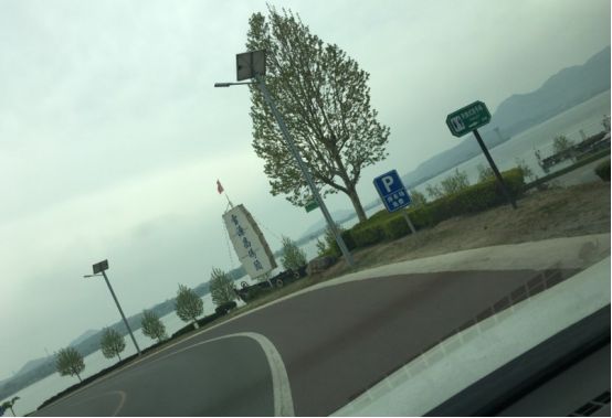 湖边上两边有很多的房子,村落,围绕着雪野湖而建的,大马路还是很平坦的