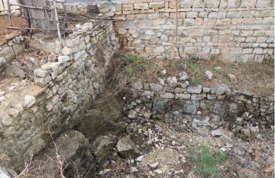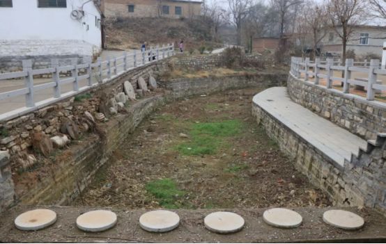 亭子边的河道。得知我们是专门来看满井泉的,亭子里休闲的几位老人笑着说来的有点早了,因为雨量太小,满井泉并没有呈现井水四溢,泉水喷涌的状况。河道中自然也就没有水了。