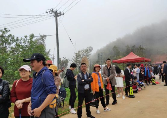 周末游人太多,当地实行交通管控,私家车不让上山顶。步行爬山或者乘坐当地的交通车