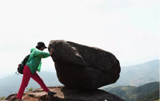 山顶上有块石头,叫风动石,来到升华山,谁都想试试自己的斤两是否撼动山。
