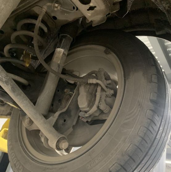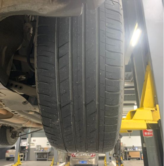 除了轮胎外侧,内侧也要检查一下, 之前有一个胎就是内侧刮到了,还好伤口不大,因为平时这个位置自己看不到的,所以有机会举升的话就重点看看。