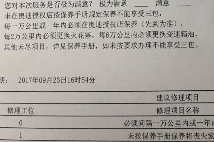 实话讲,奥迪的保养和维修,因为有大众的量在,零件费用和师傅们收取的工时费方面,相对来说,价格还是挺实在的。