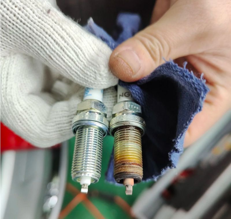 新旧火花塞对比一下,我这次没有严格按照保养要求两万公里换,上次更换之后行驶了三万多公里才换的。