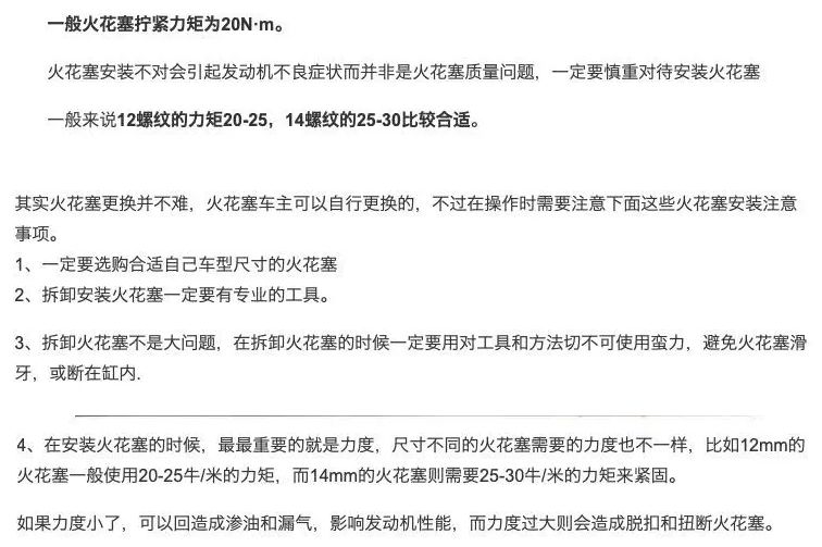 其中重要的环节包括,放置火花塞的标准方式和拧紧火花塞的力矩。
