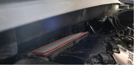 然后更换空气滤芯器。以前的车我自己能换,这车发动机舱太紧凑了,只能找师傅换。