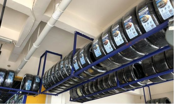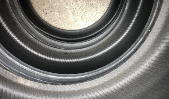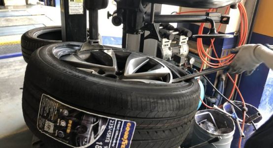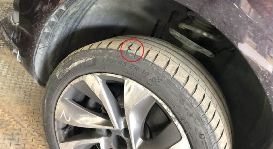 顺便看看固特异轮胎内部纹理非常整齐,好看。师傅说固特异轮胎采用交叠帘布胎体结构,这样的轮胎结构有助于增加制动轴的抗扭刚度。