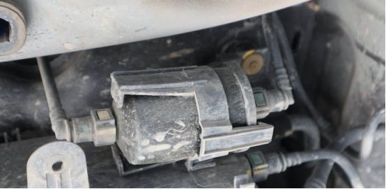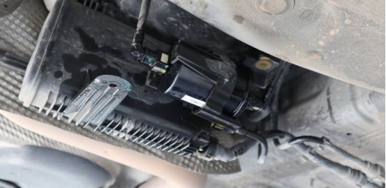在我要求下更换汽油滤清器,位置比较隐蔽,需要去除护板才能看到。