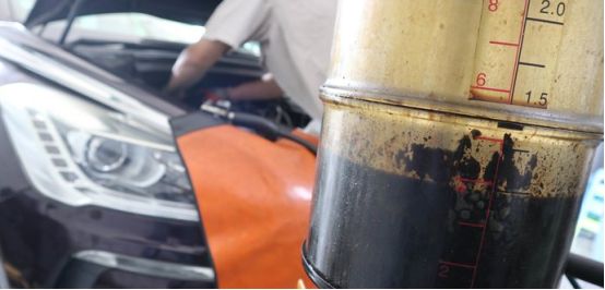 还是采用抽的方式,可以看到废机油基本在刻度4的位置。