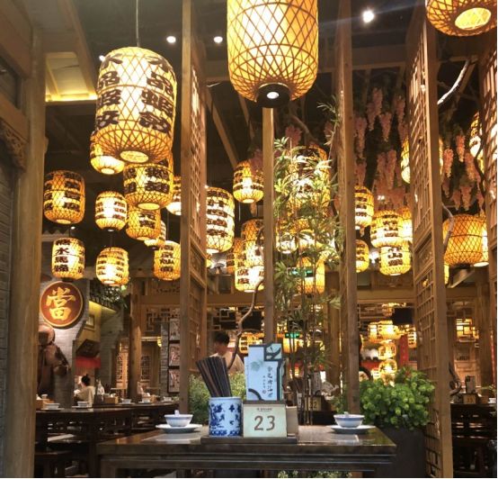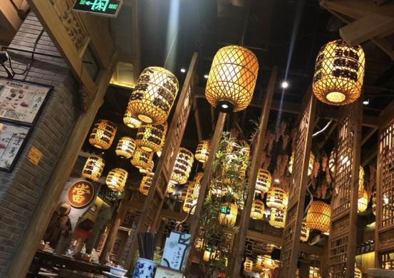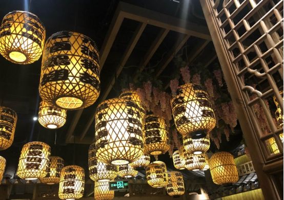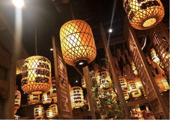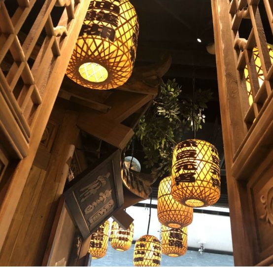 门窗什么都是原木色,没有上油漆,很有特点,屋内挂满了这样的灯笼,让你不敢高声语,恐惊天上人啊。