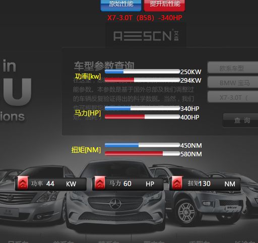 艾森发布宝马X7 3.0T程序方案:一切以安全、稳定为前提,在不损伤发动机寿命前提下,将动力优化至最佳,同时符合车主的驾驶需求,性能参数如下: