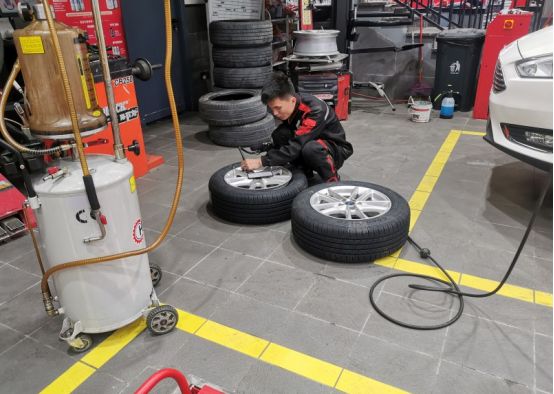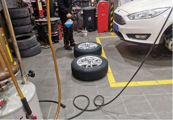 开始对轮胎进行充气。