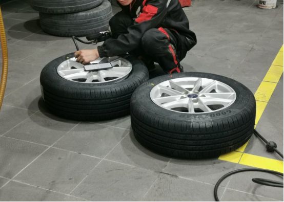 四个轮胎全部拆下,把前轮换到后轮。