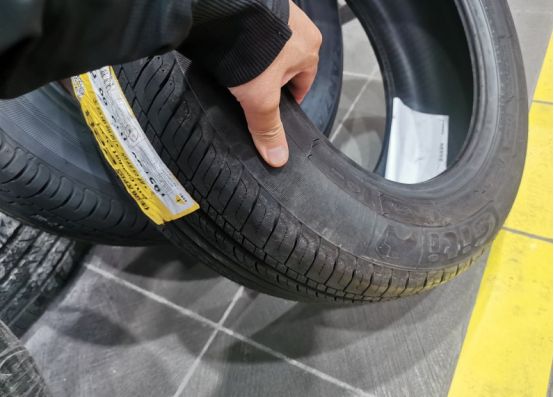 感受下轮胎,轮胎橡胶材料给人的感觉很厚实。