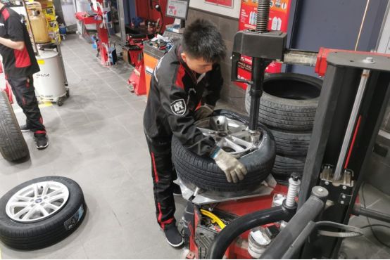 新的轮胎装上轮毂了,保障五一假期出行安全。