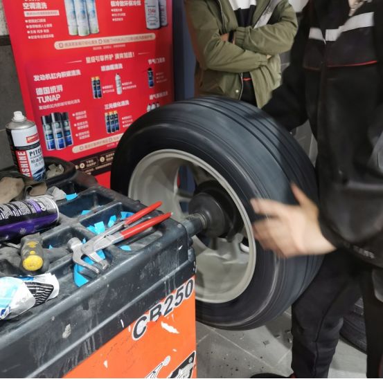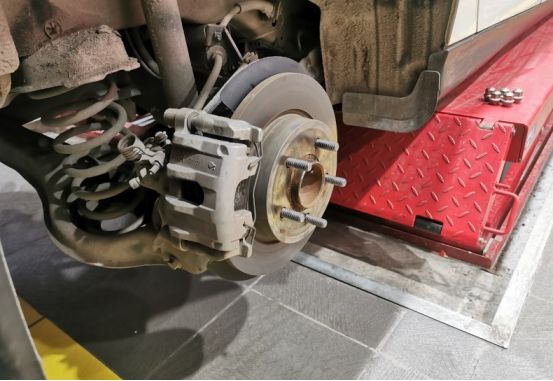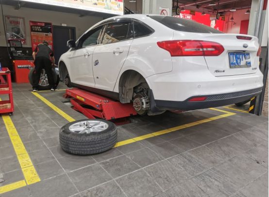 这回本来都是快到饭点的,立马飞奔去了某保养店。直接开车上架,小哥说这后轮需要更换了。表弟也表示确实应该换了。
