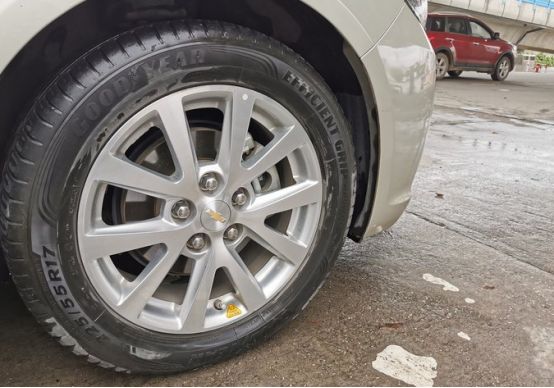 2.0豪华的大宝配的十幅轮毂非常好看,1.6t的就是五辐的。但是都是225/55R17的固特异轮胎。我是自己后来更换的固特异御乘二代,当时也是和米其林3ST对比后选择的。用起来还是很不错的,静音效果非常好。