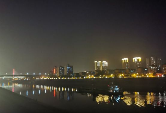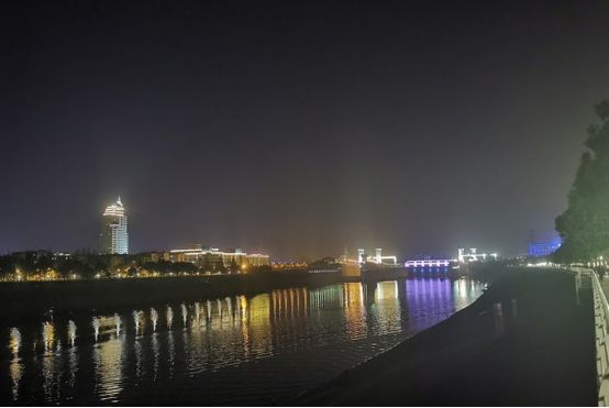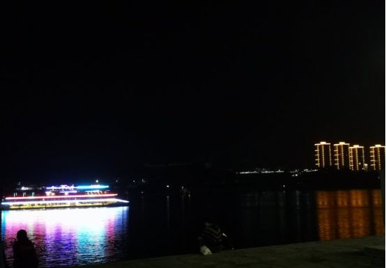 此时又驶过一艘五光十色的游轮,一阵江风吹乱了我的头发~
