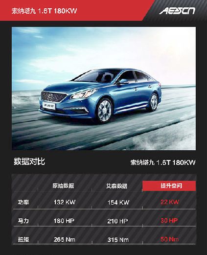 艾森发布索纳塔9程序定制方案:一切以安全、稳定为前提,在不损伤发动机寿命提前下,将动力优化至最佳,同时符合车主的驾驶需求,性能参数如下: