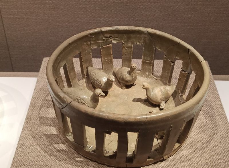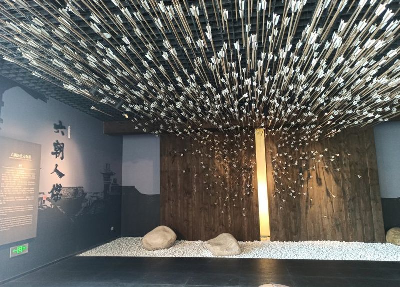 一楼从大厅往里面走,是东吴名将江表虎臣丁奉墓出土文物展,展示了从丁奉家族墓中出土的许多陪葬品,这些文物虽然不是皇家御用,但是做工同样精美。从一楼再乘电梯到达二层,这里的展厅地面高了一些,过道也被设计成了桥面的样式,过道两边铺了白色的小石头,还种上了以假乱真的竹子,走在里面感觉特别舒服。里面被分成了许多个小房间,布置的的特别精美,有的利用墙前种的假竹,通过灯光把竹影投在草帘子上;竹影婆娑,真的是太美了。整个二层介绍的主要是六朝时期的青瓷物品和墓志铭等文物,还有可爱的动物石像和人物陶俑,镇馆之宝"青瓷莲花尊"也在这里。博物馆的三层介绍的是六朝人物,一上楼就可以看见著名的草船借箭场景,非常的有特色。三层展厅的设计很有特点,由很多不规则的小间隔组成,通过照片与文字相结合,介绍了六朝时期的名人逸事。