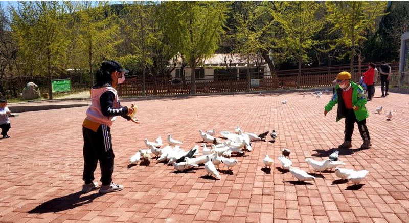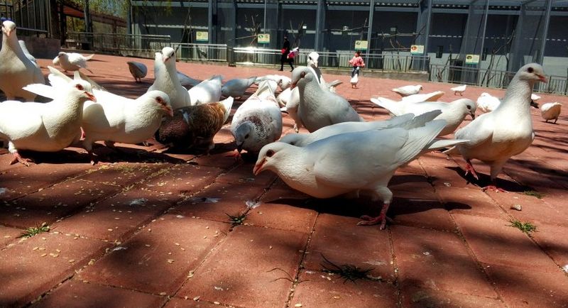 偶遇鸽子群,和平共处,鸽子也不是很怕人了