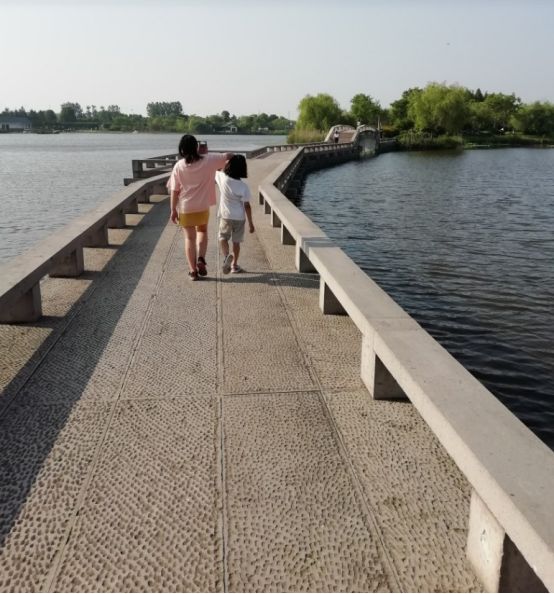 游玩结束了,吹着微风,看着湖景,打道回府罗。