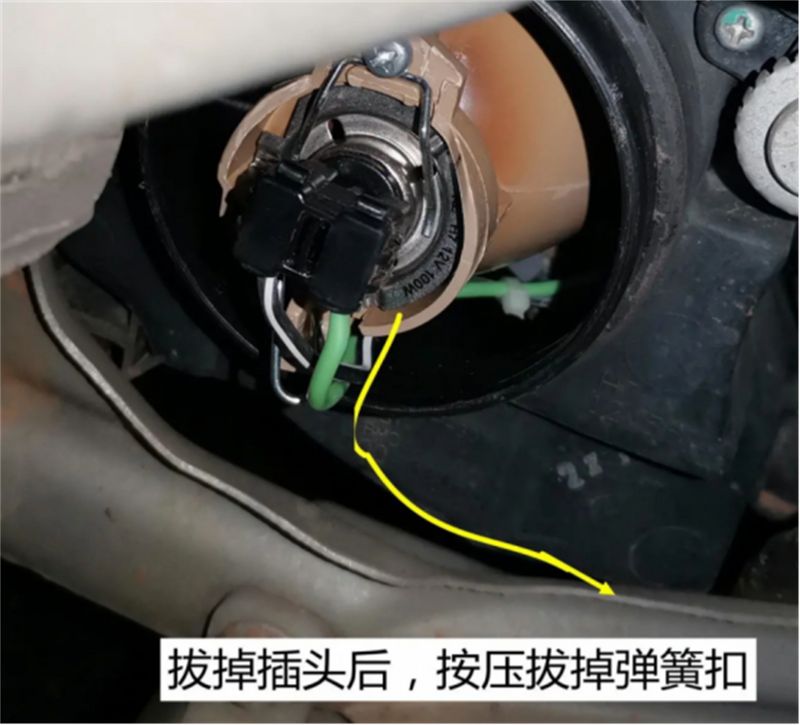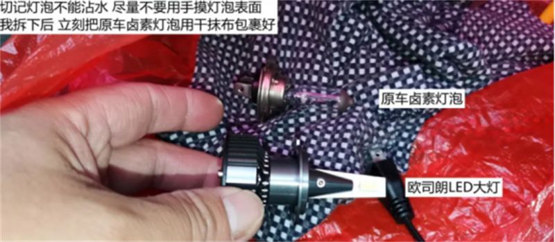 其实换大灯也不难,就是要注意 底座卡子要卡对方向,然后对插插头,另外注意灯千万别沾水。