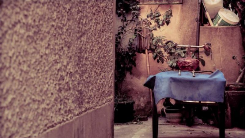 即将进入古镇,拍到一侧老房子内的一辆三轮车。