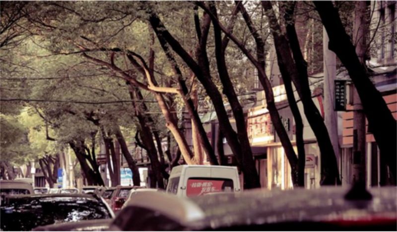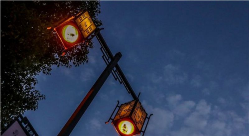来到古镇老街, 还没进入古镇。这条老街是南北朝向的,两侧都是高大的香樟树,因此倒有着不错的树荫。先找了个地方简单把晚饭解决了,其实就是一碗面,然后休息了会,等着太阳下山,等着晚霞露脸。