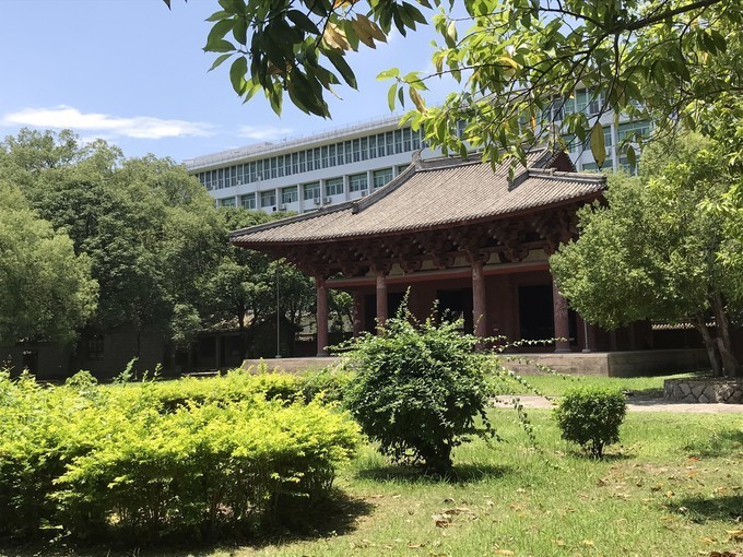 建于现代文明建筑的寺庙。大殿有18根木柱,柱子以上全由斗拱支撑,不用一根铁钉。