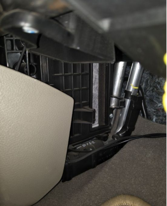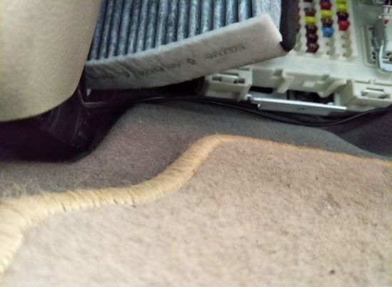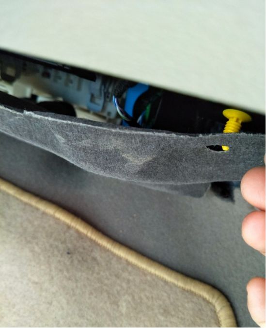 分享养车作业.这次更换空调滤芯,一早就在论坛科普知识,我知道对于体型大的车主. 这个建议还是找个洗车的更换,出个10块钱的工时费,因为空间真的太小,累。来,看这里,手套箱下面的护垫需要的拆下来
