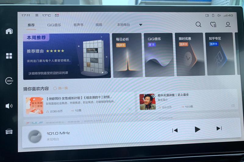 车内的三块大屏特别显眼,布局利落但科技感很强。方向盘前的液晶仪表尺寸不大,但有AR-HUD功能,比普通的HUD显示更丰富,开车的时候视线完全可以不离开前方就能看到车辆的各种信息,保证了驾驶安全。