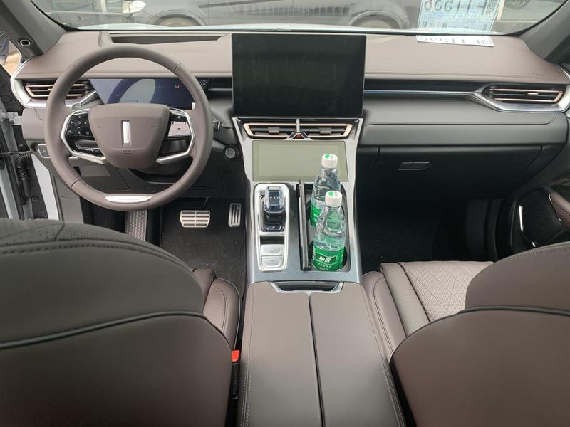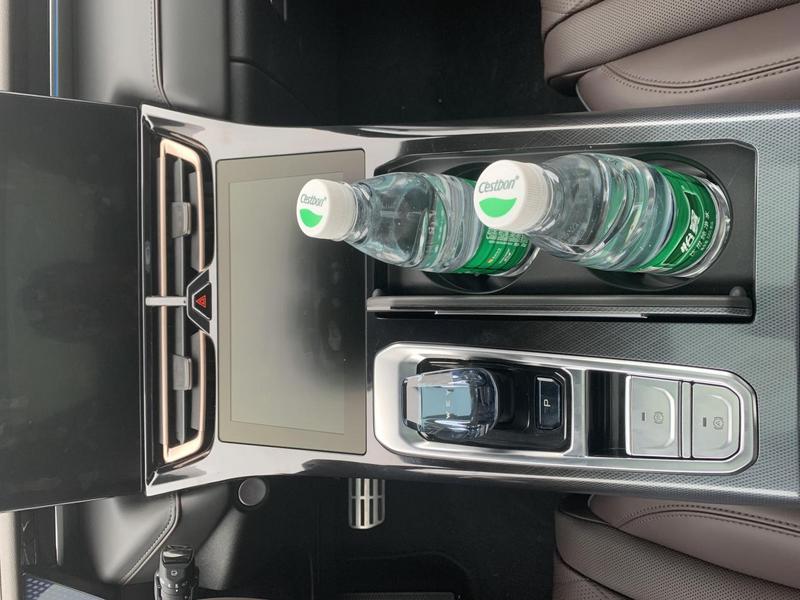 中控实体按键很少,主要是中控屏、空调屏档把和杯架,更简洁,更有科技感。