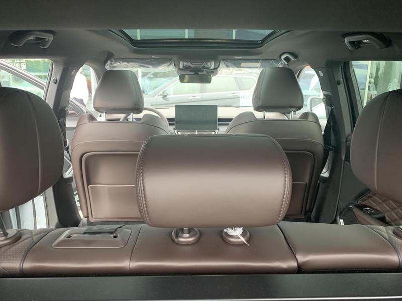 展车是棕色内饰,也可以选择米色的。米色更小清新一些,女生应该更喜欢。内饰是真皮的,在座椅上感觉跟沙发是一样的,很舒服,坐垫的长度也够,对腿部和腰部都有支撑。考虑购车之后驾车出去玩一趟,开长途的话应该不会感觉腰酸脖子硬。