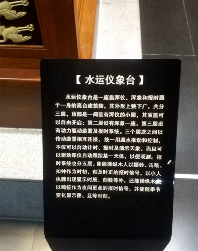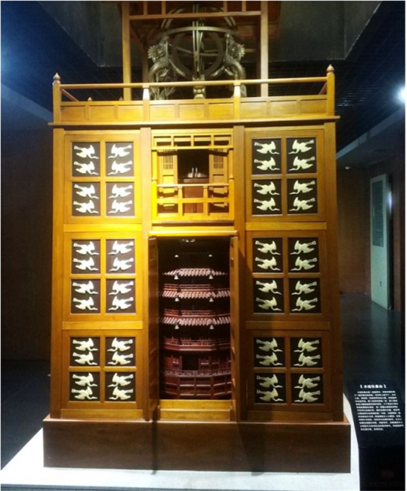 △.上面有浑天仪,下面是根据水滴计时,二者相结合,内部机关重重,每个时辰都会有小人出来报时,还可以体现日历,设计的非常巧妙