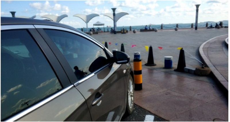 △烟台山下有十几二十个免费的公共停车位,运气不错,又被我等到一个空位