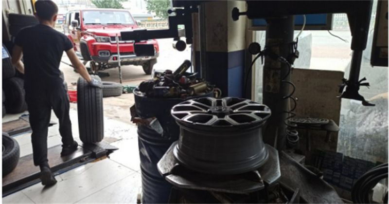 △到地方先拆下旧的轮胎,其实所谓的旧的轮胎也是新的,因为根本就没怎么跑。