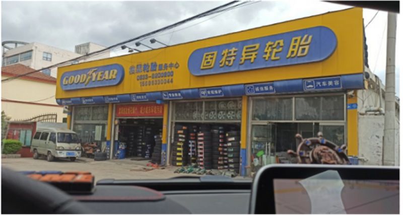 △本市的固特异轮胎店,在市中心的位置小小的店面。