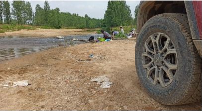 沿着河跑了一圈,其实是在河床里面意外的发现了很多车辙。