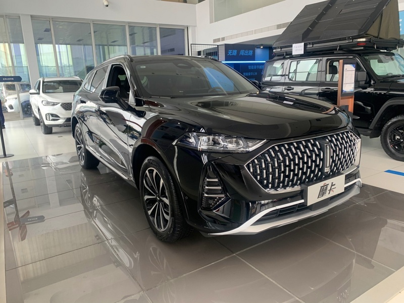 这家4S店喜欢用黑白色当展车,旁边的坦克300是黑色,后边的VV6是白色。从这些展车中就能看出WEY或者是长城,这些年也变得更年轻了,设计感越来越强,迎接年轻人的喜好。